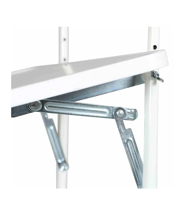 Dieser äußerst praktische, kleine Tisch wird einfach in das Geländer Ihres Balkons gehängt und ohne weiteres Werkzeug mit der Feststellschraube befestigt. Die kunststoffbeschichtete Platte des Balkonhängetisches bietet mit ihren 60 x 40 cm genug Platz für ein ausgiebiges Essen von zwei Personen. Das Stahlrohruntergestell sorgt für die nötige Stabilität und deshalb brauchen Sie sich auch keine Sorgen über ein Malheur, wie zum Beispiel ein Zusammenbrechen, zu machen. Mit der Klick-Arretierung wird die Anrichteplatte des Balkonhängetisches festgestellt und gesichert. Der Balkonhängetisch ist mit bis zu 20 kg belastbar und bietet deshalb die Möglichkeit, ausgiebig beladen zu werden. Er passt auf Geländer und Brüstungen bis 16 cm und ist somit für die meisten Balkone geeignet. Außerdem kann er ganz nach Belieben auf- oder zugeklappt werden und bietet eine platzsparende Lösung für kompakte Balkone.