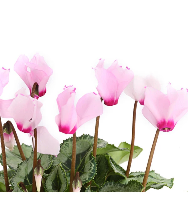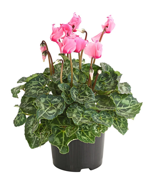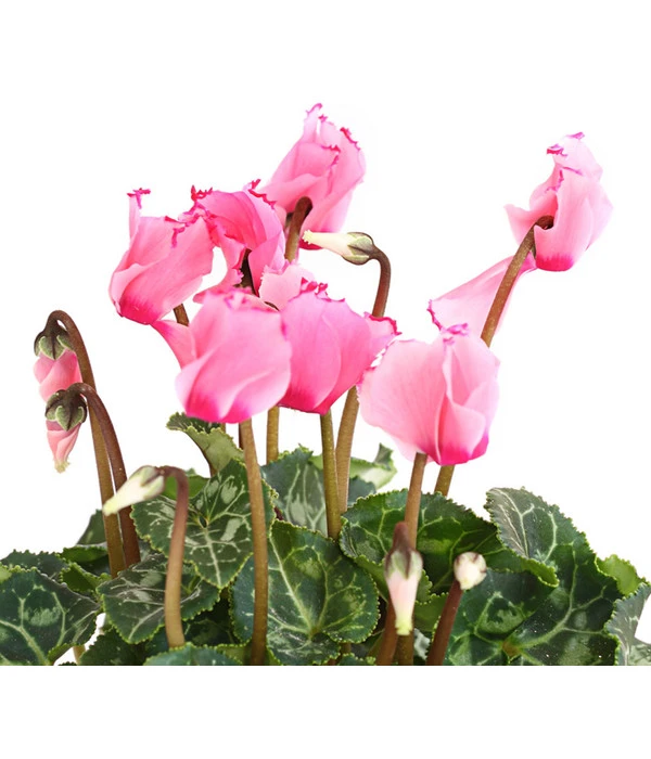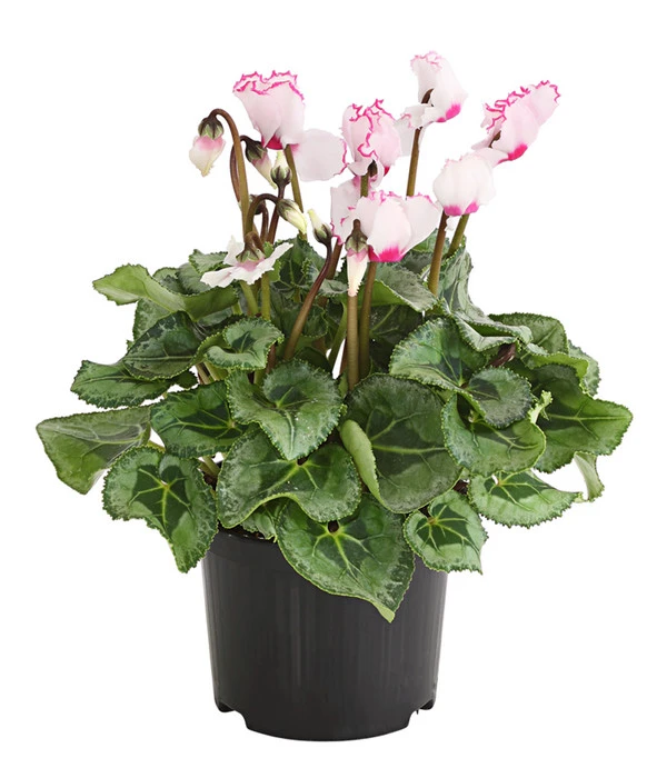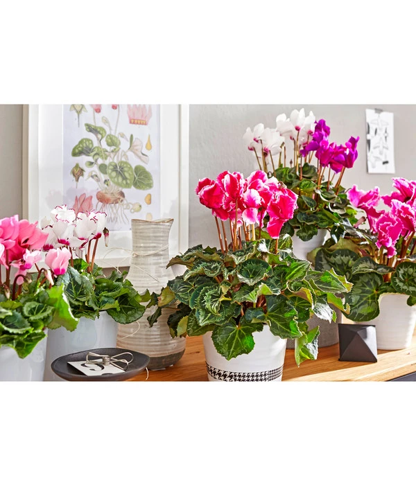 Bis vor kurzem galten sie als altbacken, jetzt können wir uns einen Winter ohne Alpenveilchen nicht mehr vorstellen. Denn kaum eine andere Pflanze präsentiert in den dunklen Wochen zwischen Oktober und März so zuverlässig und treu Blüten von einzigartiger Leuchtkraft, die garantiert jede trübe Stimmung verscheuchen. Lassen auch Sie sich verführen von den vielen neuen Sorten und bereichern Sie Ihr Wohnambiente zum Beispiel mit dem Alpenveilchen ‘Victoria‘, das seine zweifarbigen Blüten mit einem fein gerüschten Rand geschmückt hat. Doch herrliche Blüten sind nicht alles, was Cyclamen zu bieten haben, auch der buschige Wuchs und die großen, herzförmigen Blätter mit der hübschen Zeichnung sind mehr als einen Blick wert.
