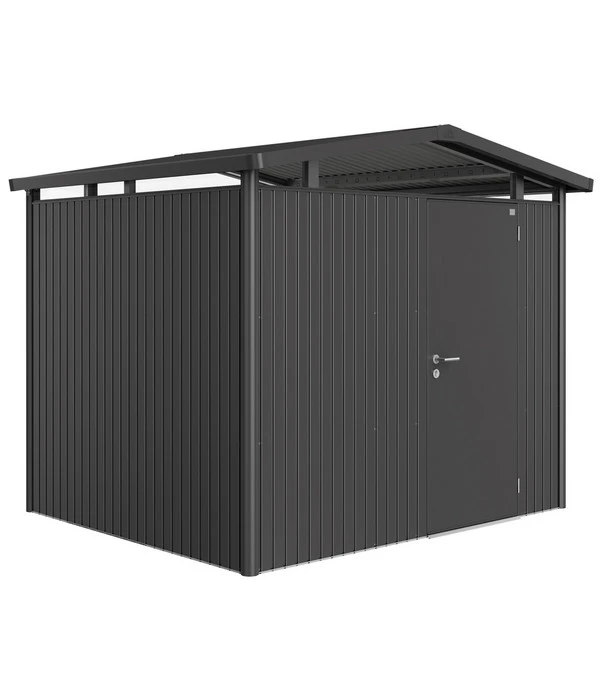 Das Gerätehaus von Biohort wurde aus feuerverzinktem, polyamid-einbrennlackiertem Stahlblech hergestellt und mit Schrauben sowie Scharnieren aus Edelstahl versehen. Dadurch verspricht es Ihnen eine lange Haltbarkeit. Es wartet außerdem mit einer hohen Stabilität bei Sturm auf und hält darüber hinaus normalen Schneelasten stand. Sie werden die Dachrinne auf beiden Seiten zu schätzen wissen, die mit einem Anschluss für ein gängiges Schlauchformat bestückt ist. Zusätzlich haben Sie 20 Jahre Garantie – bestellen Sie deshalb jetzt das Biohort Metallgerätehaus!