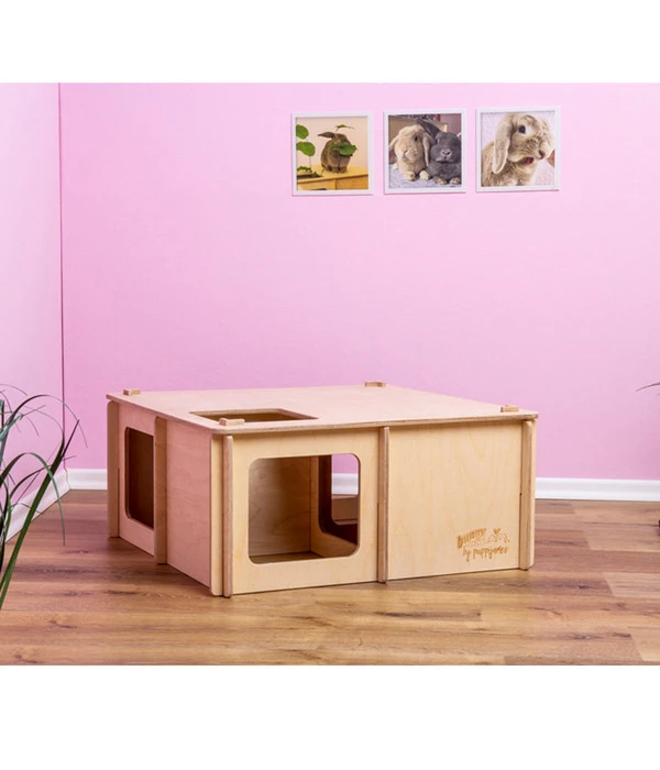Besitzen Sie Tiere wie Kanichen, Hamster oder Meerschweinchen und sind auf der Suche nach einem Häuschen, in dem sich die Kleinen verstecken, immer neue Wege erkunden oder sich auch mal zum Schlummern zurückziehen können? Dann ist das Nagerspielzeug Labyrinth aus dem Hause bunny® NATURE by puppijames hierfür ideal geeignet. Der interaktive Irrgarten bietet Ihren Kleintieren durch das flexible Stecksystem der Innenwände immer neue Labyrinthwege, durch die sie laufen können, und dadurch unzählige Möglichkeiten zum Erkunden. Da Sie das Beschäftigungsspielzeug durch weitere Labyrinthe individuell erweitern können, sind Ihrer Fantasie in der Gestaltung dieses Abenteuerspielplatzes keine Grenzen gesetzt.