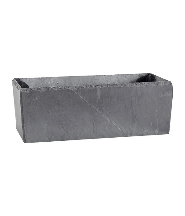 Der rechteckige Climaqua Schiefer-Kasten Jardi ist ein Blumenkasten der ganz besonderen Art. Er besteht aus echtem Naturschiefer, dessen Entstehung schon ca. 400 Millionen Jahre zurückliegt. Dieses urtümliche Gestein wirkt natürlich und elegant in Ihren Innen- und Außenbereichen. Wenn Sie den schicken Schiefer-Kasten im Innenbereich aufstellen wollen, nutzen Sie hierfür einen Untersetzer. Wenn Sie ihn im Außenbereich platzieren, vermeiden Löcher im Boden und eine Bodenerhöhung ganz einfach Staunässe unter dem Kasten. Sie werden bemerken, wie edel dieser außergewöhnliche Blumenkasten im Schweizer Design auf die Umgebung wirkt.