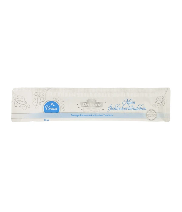 Fisch schmeckt Ihrer kleinen Naschkatze. Und Sie sind stets auf der Suche nach neuen Kompositionen, die Ihre Anforderungen erfüllen. Ein wahrer Glücksfall also, dass Sie gerade auf Dehner Premium Lovely Katzensnack Cream Mein Schleckermäulchen gestoßen sind. Denn damit können Sie jeden Tag mit einem verführerischen Thunfisch-Snack bereichern. Gleichzeitig geben Sie Ihrer Samtpfote ein wertvolles Futter, das ohne Getreide auskommt und deshalb sogar glutenfrei ist. Es eignet sich also auch für Kätzchen mit einem sensiblen Verdauungssystem, mit Glutenunverträglichkeit oder einer Futtermittelallergie.