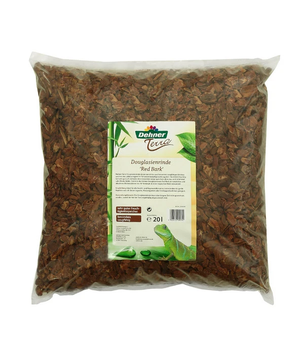 Dehner Terra Douglasienrinde Red Bark ist ein natürliches und besonders saugfähiges Einstreu, welche die Leuchtfeuchtigkeit im Terrarium bedarfsgerecht reguliert. Der Bodengrund ist ideal für alle Feucht- und Regenwaldterrarien, insbesondere für große Reptilien wie z. B. Grüne Leguane, Wasseragamen oder Stirnlappenbasilisken geeignet. Das Terrariensubstrat nimmt Feuchtigkeit sehr gut auf und kann diese besonders lange speichern, ohne dass sich Schimmel oder Moder bildet. Somit ist die Dehner Terra Doglasienrinde Red Bark ein natürliches und attraktives Bodensubstrat, das ihr Terrarium in einen tropischen Wald verwandelt. Anwendungshinweis: Die Einstreu kann über einen längeren Zeitraum verwendet werden, soweit der Kot der Tiere regelmäßig abgesammelt wird.