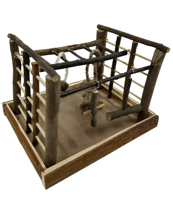 Vogelspielplatz, aus Echtholz, bietet vielfältige Beschäftigung, Maße 35/25/29 cm