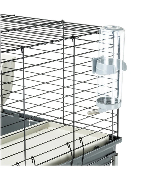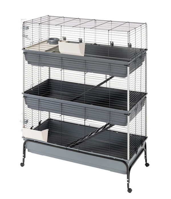 Als Halter profitieren Sie ebenfalls von den Vorzügen dieses modernen Nagerheims, denn die Reinigung gestaltet sich dank der durch Haken trennbaren Böden und Gitter kinderleicht. Auch die Sicherheit Ihrer Tiere ist selbstverständlich gewährleistet. Die einzelnen Ebenen sind durch Leitern sowie Seitensäulen verbunden und mit speziellen Verschlussklammern gesichert, sodass Sie sich um die Stabilität der Konstruktion keine Sorgen machen müssen. Die Lieferung Ihres ferplast Nagerheims Rabbit 120 Tris erfolgt inklusive umfangreichem Zubehör wie Heuraufen, Trinkflaschen und vielem mehr. Greifen Sie jetzt zu und freuen Sie sich auf zufriedene Nager!