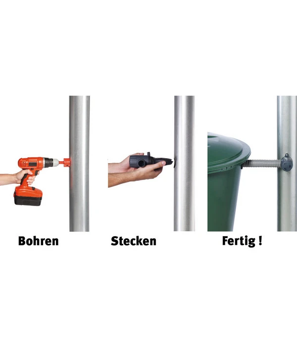 Wasser ist das Lebenselixier schlechthin – für uns und unsere Pflanzen. Der Regensammler Rapido ist ein Muss in jedem Garten. Denn Regenwasser gibt es schließlich in Hülle und Fülle zum Nulltarif. Und: Weiches Regenwasser bekommt Ihren Pflanzen deutlich besser als kaltes Leitungswasser, das je nach Region möglicherweise auch sehr kalkhaltig ist – und natürlich teuer bezahlt werden muss! Der Regensammler Rapido ist mühelos in 5 Minuten montiert, ohne dass das Fallrohr für die Montage durchtrennt werden muss. Der benötigte Bohrer wird mitgeliefert – einfach geht es also gar nicht. Das kostbare Nass wird dann in die Regentonne geleitet, wobei der Zulauf regelbar ist. Aus der Regentonne kann es nach Bedarf entnommen werden kann. Der Regensammler Rapido schont die Umwelt, entlastet Ihren Geldbeutel und versorgt Ihre Pflanzen mit dem besten Wasser, das Sie ihnen geben können.