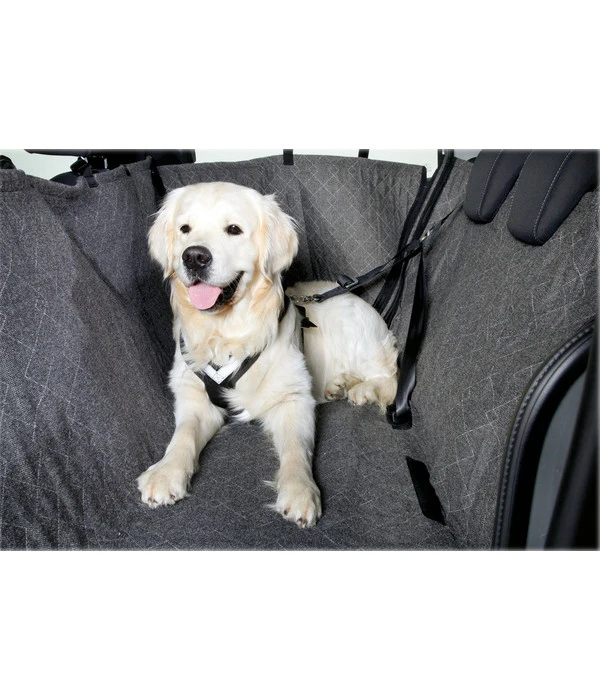 Sie wollen, dass Ihr Auto sauber bleibt, wenn Sie Ihren Hund transportieren? Dann nutzen Sie doch einfach die Rücksitzschondecke Prestige von kleinmetall®. Mithilfe der Gurte ist sie schnell im Auto installiert. Stecken Sie nun den Hundesicherheitsgurt durch die Schlitze, ziehen Sie Ihrem Vierbeiner das Geschirr an und die Reise geht sicher und sauber los. Die Seitenteile der Decke sind verstrebt und somit sehr robust, sodass Ihnen das Zubehör lange für die Touren mit Ihrem Liebling zur Verfügung steht. Ihre Rücksitzbank bleibt dabei stets frei von Schmutz und Haaren, wodurch Sie sie schnell und ohne Reinigung wieder für Ihre Familie und Ihre Freunde nutzen können.