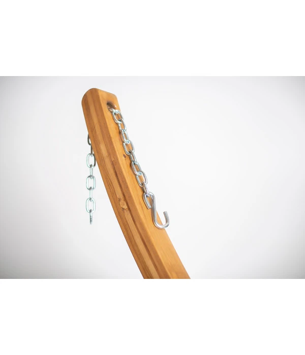 Das La Siesta Gestell wurde aus hochwertigem und FSC-zertifiziertem Lärchenholz hergestellt. Darüber hinaus besticht es mit seinen wetterbeständigen Eigenschaften. So können Sie es bei Sonne, Regen und Wind ganz unbesorgt draußen stehen lassen. Freuen Sie sich auf das schlichte und moderne Design, das sich perfekt in Ihren Garten einfügen wird, und bestellen Sie das La Siesta Hängematten-Gestell Elipso am besten noch heute!