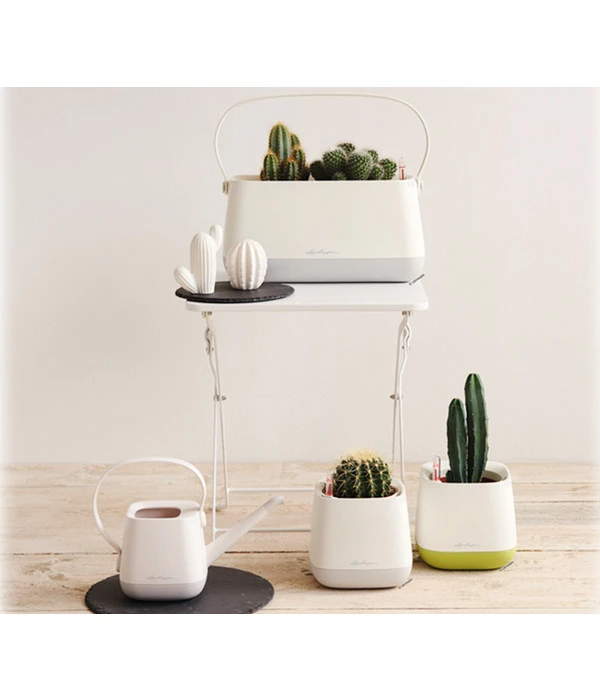 So auch im Fall der LECHUZA® YULA Gießkanne. Denn sie bietet Ihnen Komfort bei der Wasserversorgung Ihrer Pflanzen. Der weit geschwungene Griff liegt gut in der Hand und ermöglicht zielgenaues Gießen. Die vorn nach unten geneigte Tülle sorgt für tropffreies Gießen. Dank der großen Öffnung ist sie leicht zu befüllen und mit 1,7 l Inhalt schaffen Sie einiges, bevor Sie nachfüllen müssen. Kurzum: Die LECHUZA® YULA Gießkanne ist Ihr neuer, schlauer Helfer für die Fensterbank.
