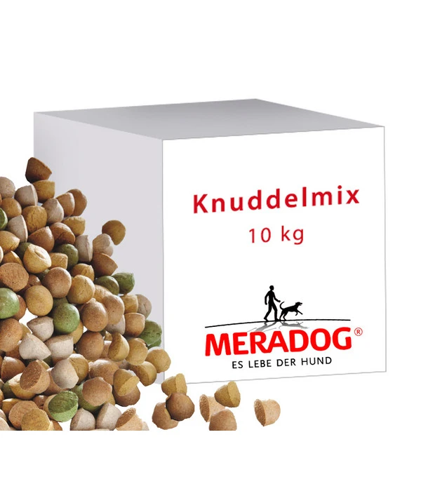 Geliefert werden Ihnen die Knuddelmix Leckerli von MERA® Knuddelmix in der praktischen 10 kg Packung. So sichern Sie sich einen großen Vorrat an leckeren Hundesnacks und damit jederzeit genug schmackhafte Belohnungs-Häppchen für unterwegs oder für zu Hause.