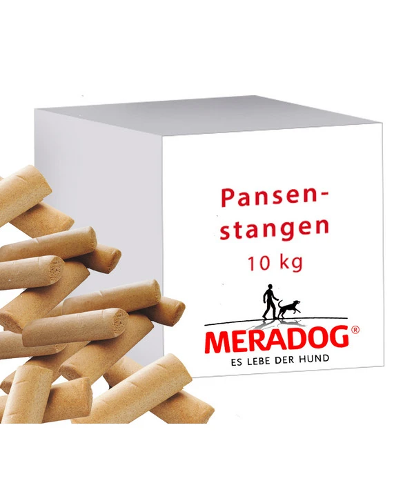 Sie möchten für Ihren Hund eine gesunde und leckere Belohnung? Dann liegen Sie mit der MERA® Pansenstange genau richtig, denn der schmackhafte Hundesnack ist eine vernünftige Alternative und ergänzt auf sinnvolle Weise das tägliche Hundefutter Ihres Lieblings. An dem harten Hundekeks hat Ihr Hund echten Knabberspaß, der so gleichzeitig zur Stärkung der Kaumuskulatur und zur wichtigen Zahnpflege beiträgt.
