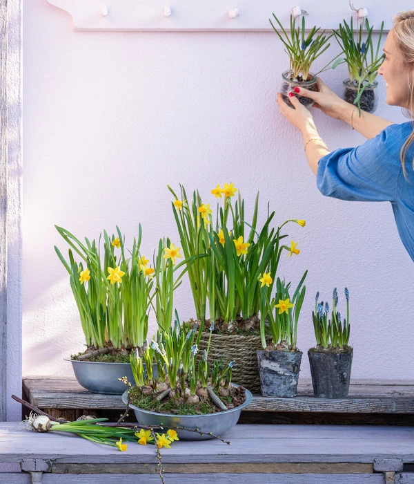 Naturmaterial liegt im Trend und ergänzt optisch außerdem wunderbar bunte Blüten. Das Gelb der Narzissenblüten, die aus den Zwiebeln erwachsen werden, bildet bald einen knalligen Kontrast zur Birkenrinde des Topfes. Und dank seiner Größe fällt das Arrangement zwar positiv auf, wirkt aber keinesfalls überladen. Nutzen Sie doch mehrere der Töpfchen als Tischdekoration für Ostern oder schmücken Sie damit den Eingangsbereich neben Ihrer Haustüre. Für noch mehr rustikalen Charme können Sie beispielsweise Obstkisten umdrehen und mit dem Birkentopf mit Narzissen dekorieren, ergänzt um kleine Accessoires und weitere Frühlingsblumen haben Sie so im Nu einen Blickfang kreiert.