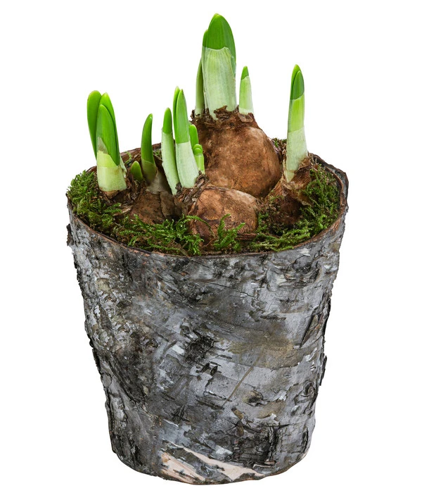 Das Töpfchen hat genau die richtige Größe, um unkompliziert transportiert zu werden und ist damit auch das ideale Mitbringsel für liebe Freunde oder Verwandte. Verschenken Sie mit dem Birkentopf mit Narzissen doch Frühlingsstimmung und gute Laune. Wer möchte, kann das Arrangement noch mit bunten Bändern oder kleinen Steckern in Osterhasen-Form aufhübschen und dem Anlass entsprechend gestalten. Aber auch so wirkt die Frühlingsdekoration dekorativ und immer modern. Holen Sie sich den Frühling nach Hause mit den Narzissen im Birkentopf!