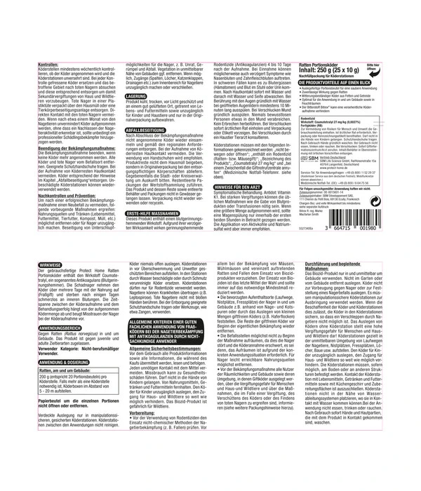 Ratten?! Da stellen sich Ihnen gleich alle Nackenhaare auf? Mit dieser Reaktion sind Sie nicht allein, denn Ratten gehören zu den unbeliebtesten Tieren. Und die Schadnager werden nicht ohne Grund gefürchtet: sie können gefährliche Krankheiten übertragen, vermehren sich rasant, sind hochintelligent und schwer zu bekämpfen, wenn sie sich erst einmal häuslich niedergelassen haben. Deshalb unser Rat: Warten Sie keinen Moment, wenn Sie erste Spuren von Ratten im oder ums Haus entdecken, sondern ergreifen Sie sofort Gegenmaßnahmen! Mit PROTECT HOME Rodicum® Ratten Portionsköder haben Sie einen hochwirksamen, anwendungsfertigen Fraßköder zur Bekämpfung von Schadnagern zur Hand, der Sie bei der Bekämpfung effektiv unterstützt.