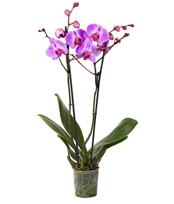 Arrangieren Sie die Schmetterlingsorchideen ganz einfach selbst. Bei Dehner gibt es exklusive Orchideenübertöpfe, die die Silhouette dieser edlen Pflanzen zusätzlich unterstreichen. Ein breites Sortiment an Zubehör, wie Orchideenklammern oder -stäbe, finden Sie in unserem Online-Shop auf dehner.de, oder im Markt in Ihrer Nähe. In Kombination mit Farnen, Zierspargel oder Zimmerbambus können Sie sich sogar ein Stück tropisches Gefühl in Ihr Wohnzimmer holen! Ob nun für Ihre Fensterbank, oder als Geschenk zu Muttertag oder zum Geburtstag, die Schmetterlingsorchidee zaubert jedem ein Lächeln ins Gesicht.