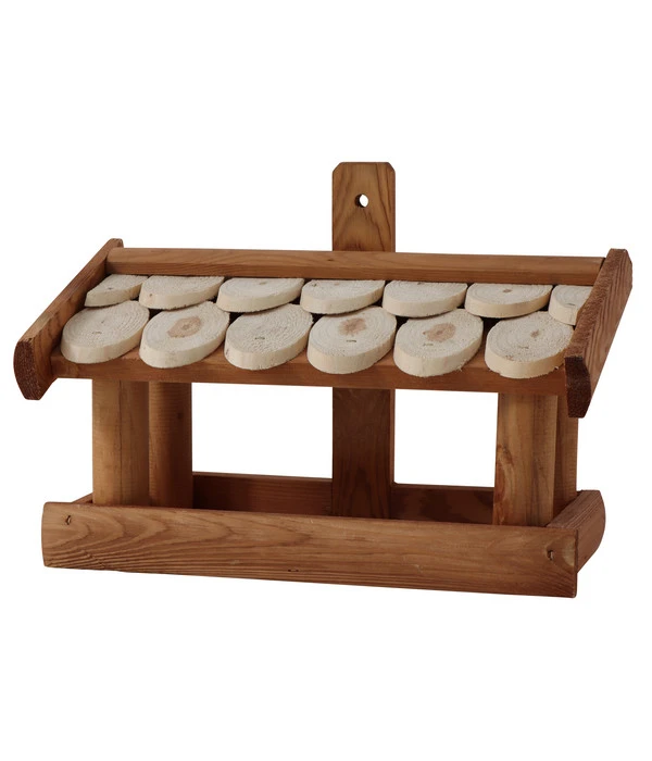 Das Siena Garden Vogelhaus Thorn eignet sich zum Hinstellen oder Anhängen – für letztere Fälle ist eine praktische Vorrichtung zur schnellen Anbringung vorhanden. Sofort versprüht das Produkt, das aus robustem sowie FSC-zertifiziertem Kiefernholz besteht, überall seinen Charme. Zur hübschen Gestaltung trägt das breite Dach mit hervorstehenden Schindeln bei, die den Tieren zudem Schutz vor der Witterung bieten. Erhöhte Leisten verhindern außerdem das Herausfallen der Leckereien. Nicht zuletzt hält das Häuschen viel Platz für das Futter bereit und lädt die Wildvögel dadurch zum Verweilen ein – ein Extra-Landebereich erleichtert das Anfliegen enorm. Entscheiden Sie sich mit dem Siena Garden Vogelhaus Thorn also für ein durchdacht konstruiertes und hübsch designtes Gartenelement!