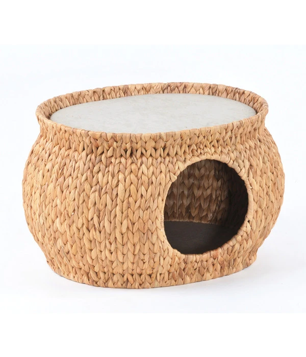 Die Katzenhöhle Casa von Silvio Design bietet mit Ihrer Kuschelhöhle und der großzügigen darüber liegenden Liegefläche einen Ort, an dem sich Ihre Katze jederzeit entspannen, zurückziehen und schlafen kann. Ein stabiler Metallrahmen gibt dem weichen Geflecht aus Wasserhyazinthen die Stabilität und die natürliche Optik wird Sie überzeugen. In der gemütlichen Höhle der Katzenhöhle findet Ihre Katze den perfekten Platz zum Schlafen und Verstecken. Die darüber befindliche offene Liegefläche mit ihrem weichen Textilbezug ist dafür umso besser geeignet, die Umgebung zu beobachten oder zu entspannen. Ein formschöner und großzügiger Rückzugsort für Ihre Katze, das ist die Silvio Design Katzenhöhle Casa.