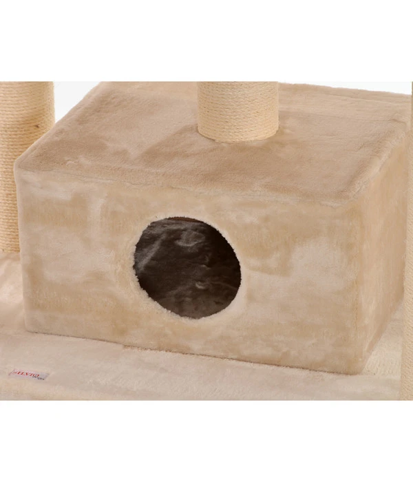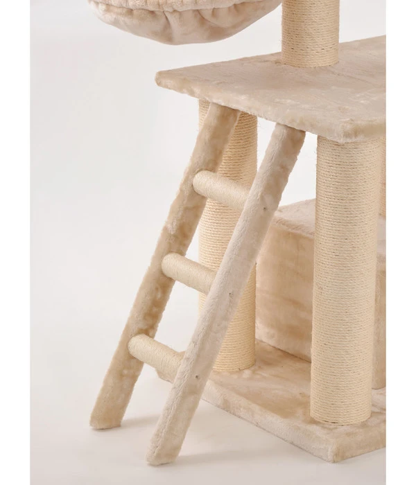 Wie Ihnen vielleicht schon aufgefallen ist, sind die Holme beim Katzenkratzbaum Ginni XXL von SILVIO design besonders dick (Ø ca. 12 cm) und zusätzlich mit kräftigem Natursisal umwickelt, an denen Ihre Samtpofte ausgiebige Krallenpflege betreiben kann. Ob Aussichtplattform, die beiden Liegemulden oder die Kuschelhöhle – alle Liegeflächen sind mit samtig weichem Plüsch bezogen, der besonders dicht gewebt ist. Und damit auch ältere Stubentiger ihr Lieblingsplätzchen oben auf der Spitze bequem erklimmen können, ist der Katzenbaum außerdem mit einer Leiter ausgestattet.