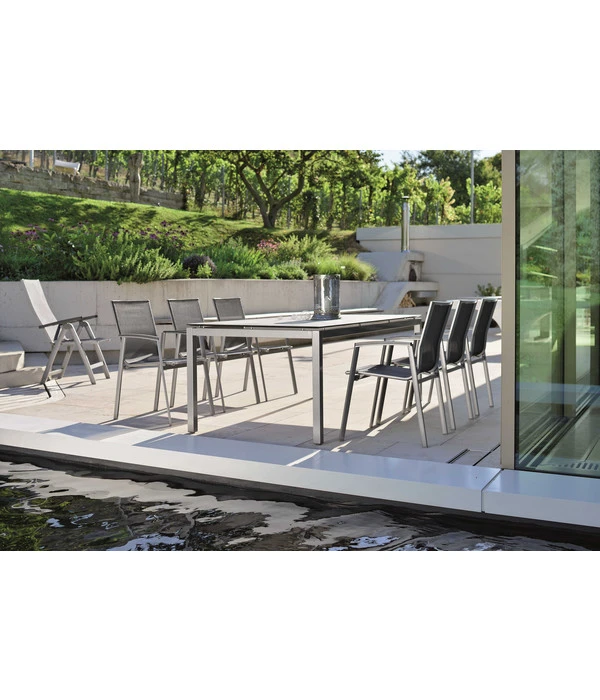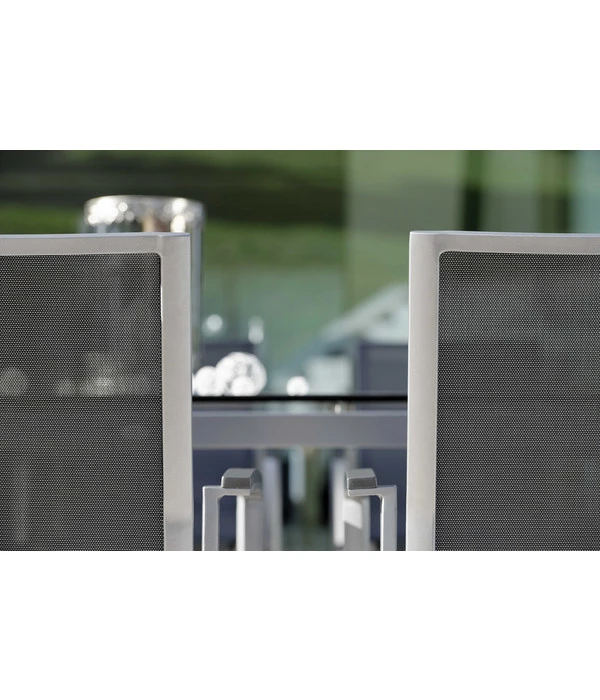Gartensessel müssen viel aushalten. Wenn sie Tag für Tag draußen auf der Terrasse oder dem Balkon stehen, brennt mal die heiße Sonne auf sie nieder, mal stehen sie buchstäblich im Regen. Und in der schlechten Jahreszeit müssen sie auch noch Schnee und knackigen Frost aushalten. Aber dank moderner Funktionsmaterialien ist das für Gartenmöbel wie den Stern Stapelsessel New Top nicht mehr der Rede wert. Deshalb konnte sich der Designer auch voll auf die Optik des Gartensessels konzentrieren, die ihm, wie wir finden, perfekt gelungen ist. Zu dem zeitgemäß schlichten Gestell in der Trendfarbe Graphit kombinierte er ein silberfarbenes Outdoor-Gewebe – ein Mix, mit dem der Gartensessel Ihrem Outdoor-Bereich eine Atmosphäre nobler Eleganz verleihen wird. Genießen Sie bald mit Ihrer Familie und guten Freunden viele entspannte Stunden in dem Stern Stapelsessel New Top!