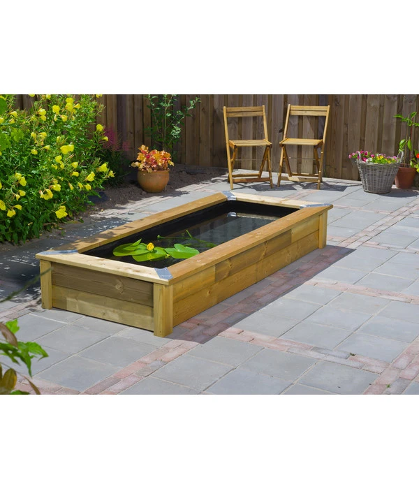 Was Sie an diesem Teichmodell besonders schätzen werden: Die Teichfolie wird nicht auf dem Boden ausgebreitet wie bei herkömmlichen Folienteichen, sondern sie ist bereits auf Maß zugeschnitten und wird einfach in die Holzumrandung eingehängt. So können Sie Ihren Gartenteich ganz schnell und unkompliziert überall dort aufstellen, wo Sie möchten. Und die natürliche Ausstrahlung des Gartenteichs zum Beispiel auch direkt auf Ihrer Terrasse erleben.