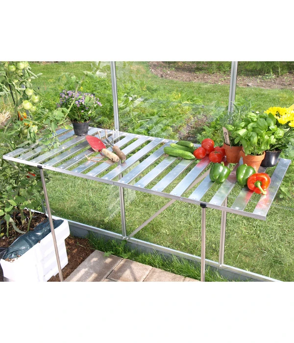 Sie sind auf der Suche nach sinnvollem Zubehör für Ihr Gewächshaus, weil Sie dieses noch besser nutzen möchten? In diesem Fall kann der praktische Vitavia Alu-Tisch sehr interessant für Sie sein. Er bietet sich zum Beispiel wunderbar zum griffbereiten Ablegen von allerlei Arbeitsmitteln an. Im Hinblick auf das Format ist das Möbel auf die Gewächshäuser von Vitavia angepasst. Auf diese Weise können Sie den Raum in solchen Modellen sehr effizient nutzen. Natürlich ist der Tisch auch für viele andere Häuschen zum Kultivieren von Pflanzen eine geeignete Option. Mit seinem filigran gezeichneten Look wirkt der Vitavia Gewächshaus-Tisch außerdem sehr attraktiv. Er fügt sich auf eine wundervolle, dezente Art und Weise in sein Umfeld ein.
