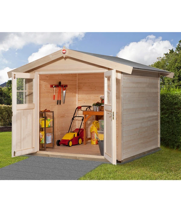 Sie pflegen Ihre Grünfläche sowie Ihre Blumen hingebungsvoll und haben dafür zahlreiche Gerätschaften parat? Dann werden Sie sicherlich ein großer Fan des Weka Gartenhauses 122 Gr. 1 mit naturbelassener Oberfläche. Das schmucke Häuschen bietet Ihnen viel Platz für Rasenmäher, Trimmer und andere Gartengeräte. Es zeichnet sich durch eine stabile Unterkonstruktion und ein solides Massivholz-Satteldach aus. Auch die starken Wandbohlen werden Sie überzeugen, die dem Gartenhaus von Weka zusätzlich viel Stabilität verleihen. Weka rüstet seine Gartenhäuser mit einer stabilen Unterkonstruktion aus, sodass das Holzhaus von allen Seiten gut geschützt ist.