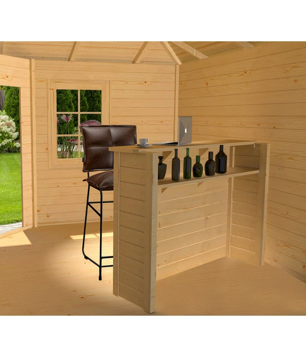 Hergestellt aus hochwertigem europäischem Fichtenholz ist der Tresen besonders stabil. Nach der einfachen Montage besitzt der Tresen außerdem eine praktische Ablagefläche auf 90 cm Höhe. Am besten bestellen Sie den Tresen zu Ihrem Gartenhaus direkt dazu und missen diesen komfortablen Tresen nicht.