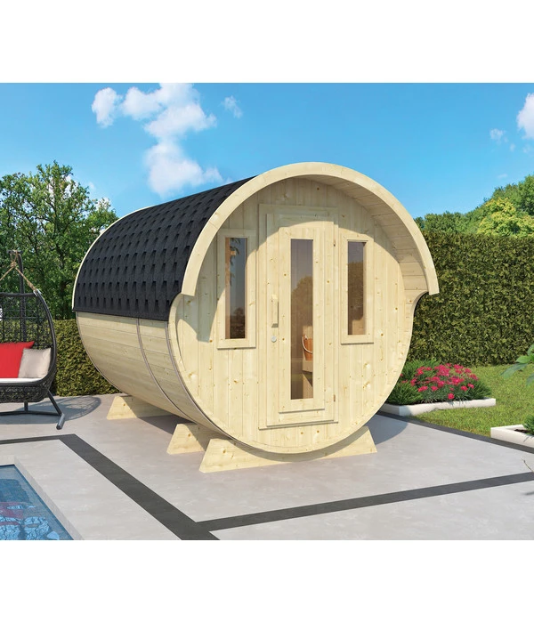 Es ist schon von außen betrachtet der Hit, die größte Freude wird Sie jedoch sicherlich im Innenraum erwarten. Denn das Finnhaus Saunafass 330 de luxe wird zu Ihrer privaten Sauna-Oase, sobald es in Ihrem Garten aufgestellt und mit Ihrem separat bestellten Saunaofen bestückt wurde. Es kommt sogar bereits montiert bei Ihnen an und wird an der von Ihnen ausgewählten Stelle zum absoluten Highlight und Gestaltungselement Ihrer Gartenlandschaft. Und obwohl es innen viel Raum bietet, braucht es erstaunlich wenig Stellfläche. Das heißt, dieses Vergnügen können Sie sich auch in einem kleineren Garten gönnen. Beschenken Sie sich deshalb schon bald mit einem Finnhaus Saunafass 330 de luxe montiert und genießen dann Saunagänge wann immer Ihnen danach ist!