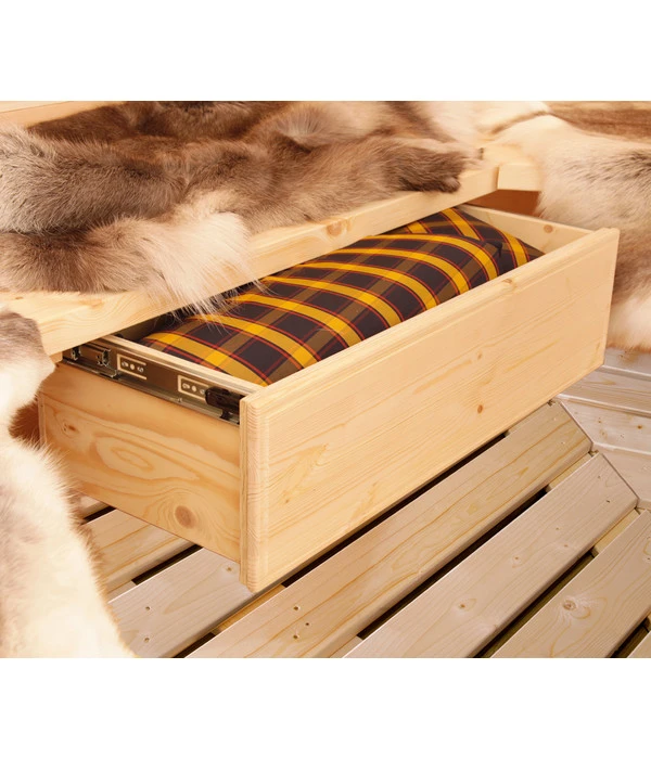 Die Box ist besonders platzsparend, weil sie unter dem Sitz Ihrer Grillkota einfach verschwindet. In der Schublade bewahren Sie beispielsweise die Decken auf, in die sich Ihre Familie angenehm einkuscheln kann. Zudem erlaubt Ihnen die Box, dass Sie alle Ihre Grillutensilien direkt in der Hütte verstauen. Demnach müssen Sie bestimmt nie wieder nach Ihren liebsten Grillhandschuhen oder der Grillschürze suchen, bevor Sie Ihre feinen Fleisch- oder Gemüsespezialitäten zaubern. Wenn Sie es in Ihrer Hütte noch bequemer haben wollen, besorgen Sie sich die Utensilienbox Grillkota der Marke Wolff Finnhaus!